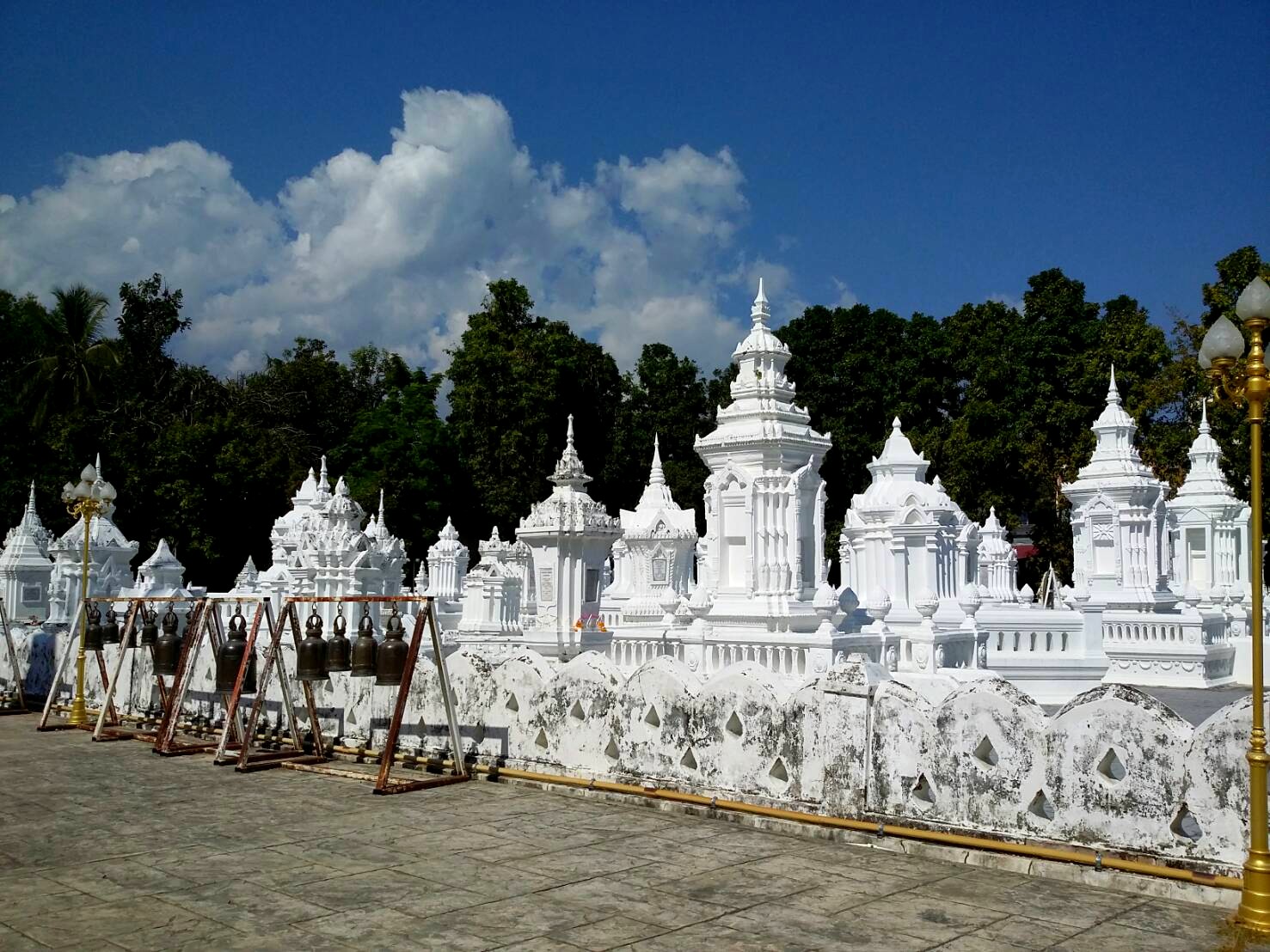 一番の見所は、広々とした境内に所狭しと林立する白い仏塔。