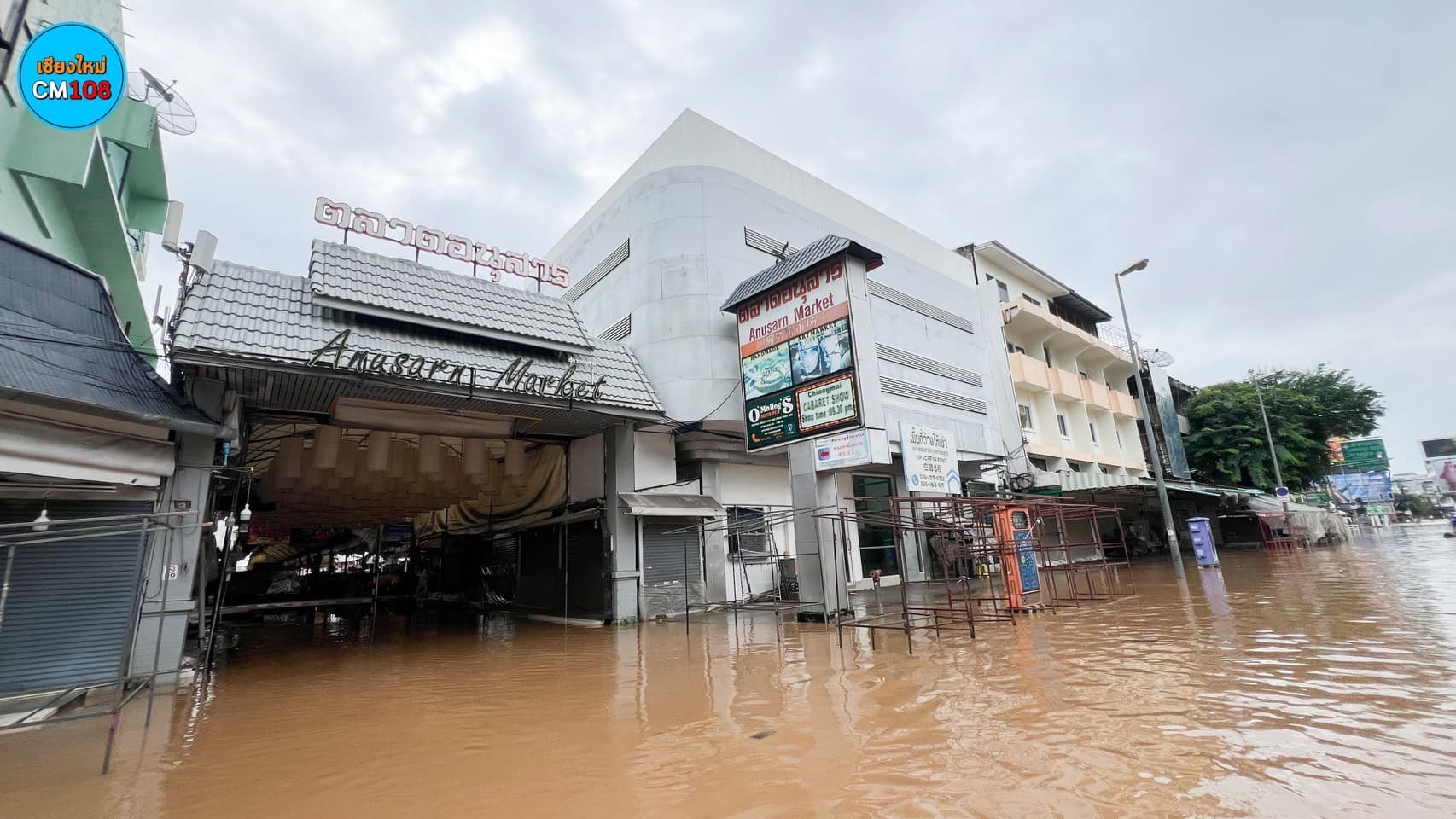 チェンマイ市内ナイトバザールが、またも川の水で冠水