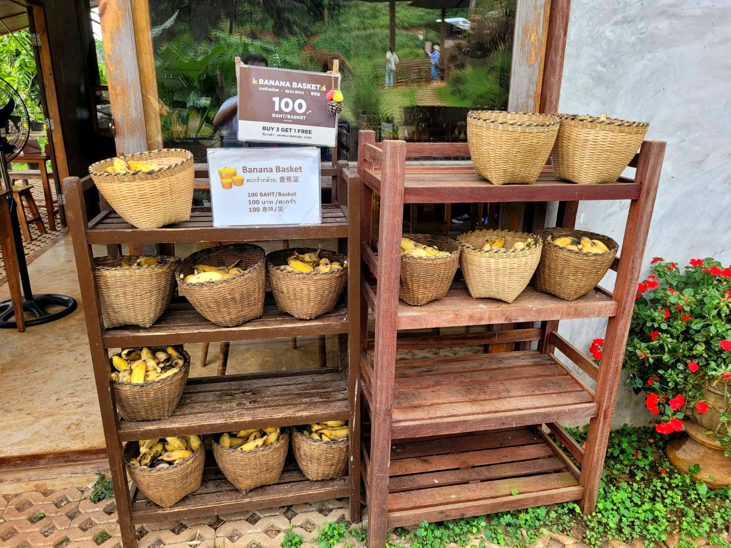 (バナナ1かご100バーツ)