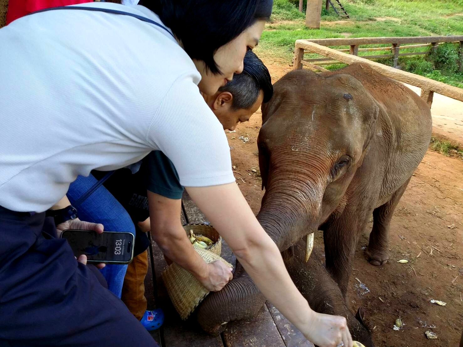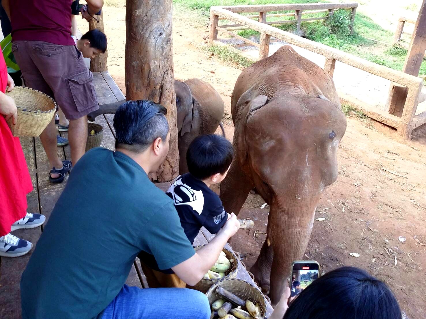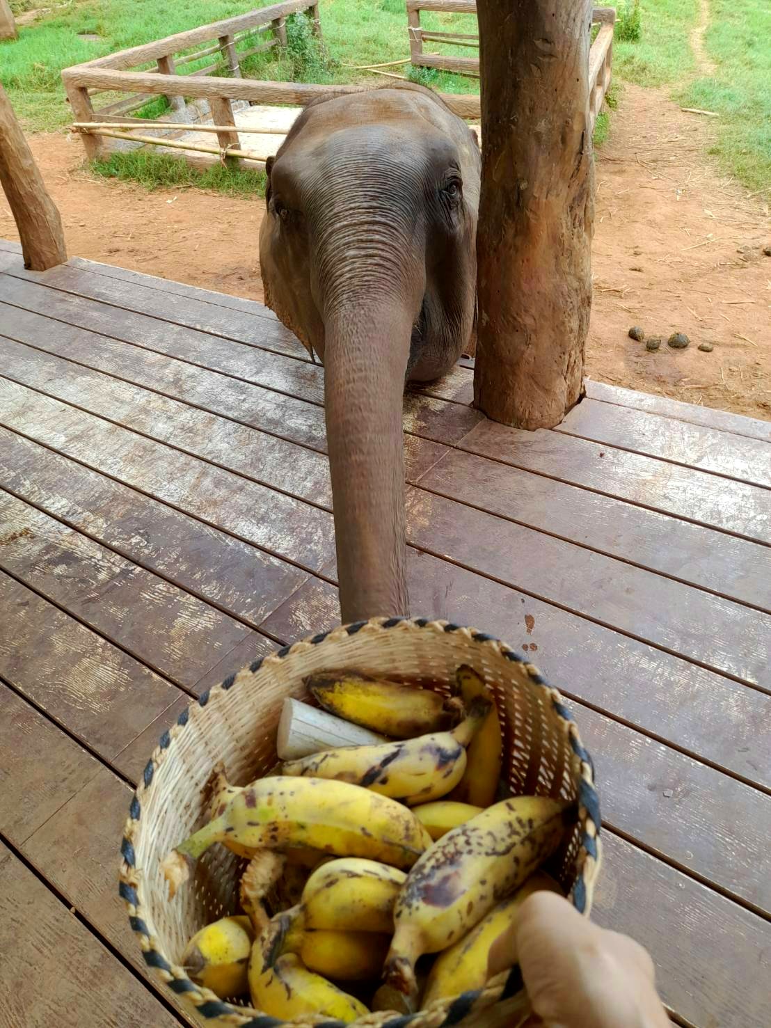 画像右側に見えますカゴが、象さんにあげるバナナです。