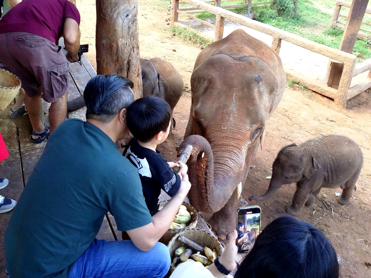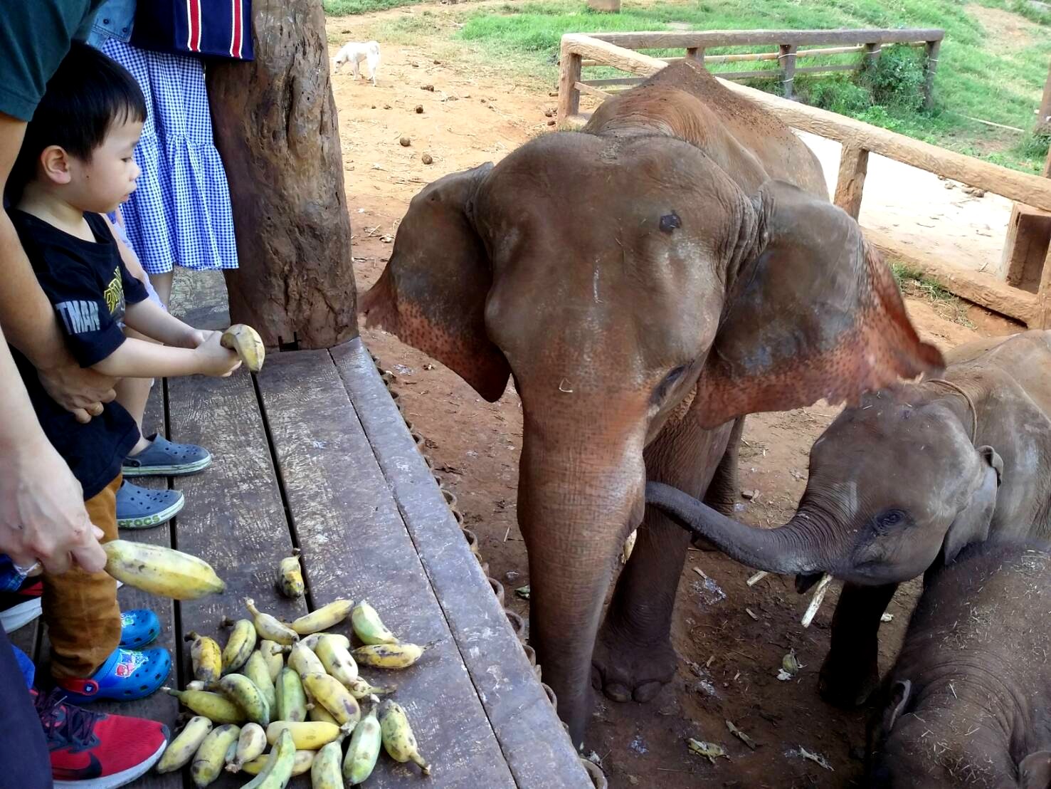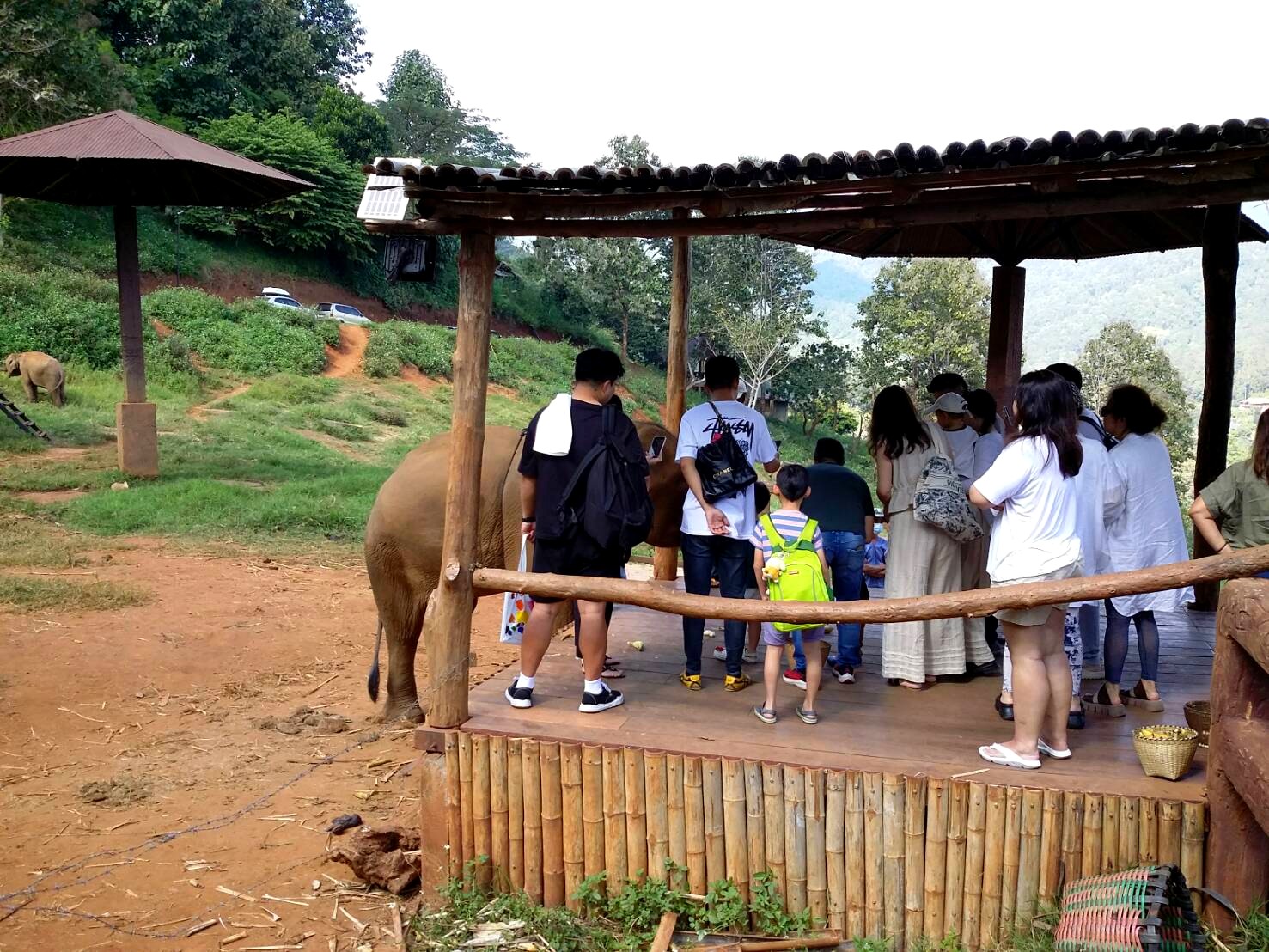 画像右側に見えますカゴが、象さんにあげるバナナです。