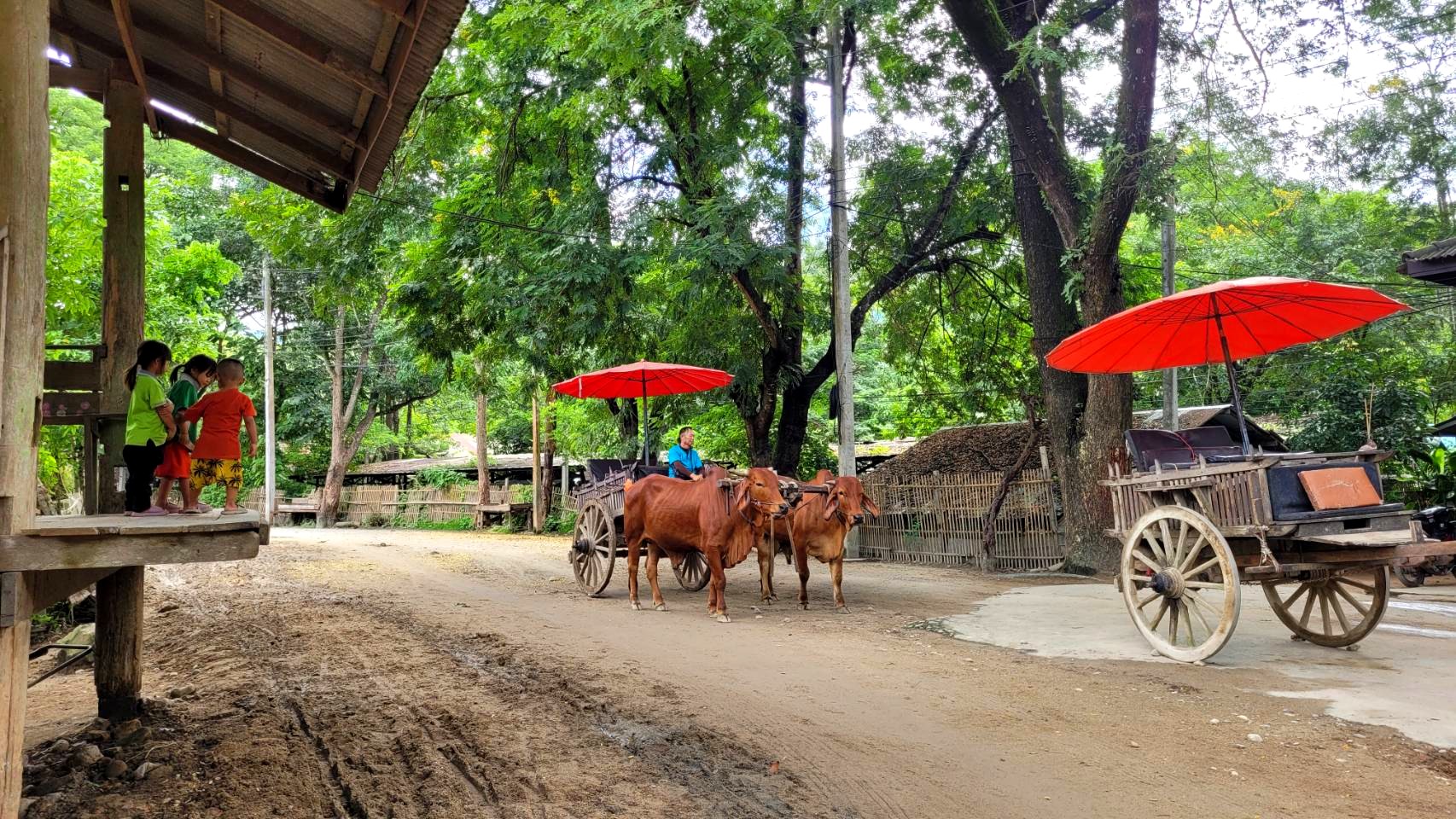 ▼牛車に乗って、ゆっくり散策。運転もさせてくれます。