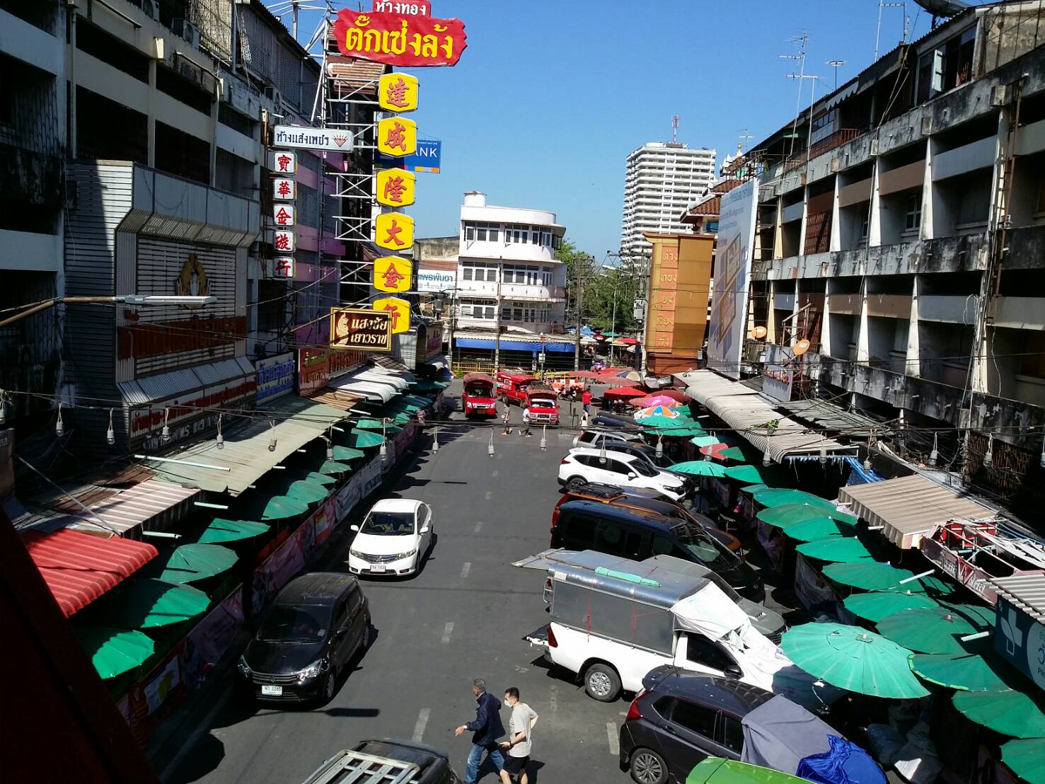市内を走る赤いソンテウが発着する乗り合いタクシーのターミナルにもなっている。